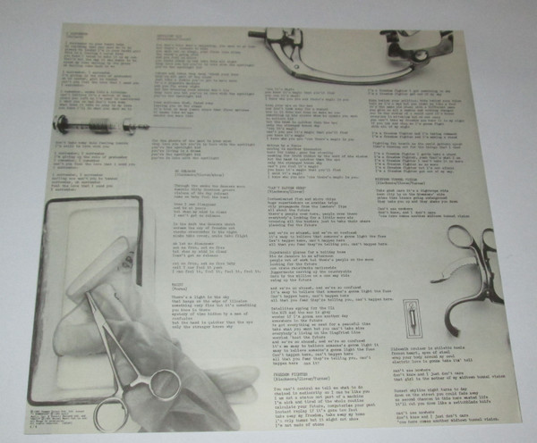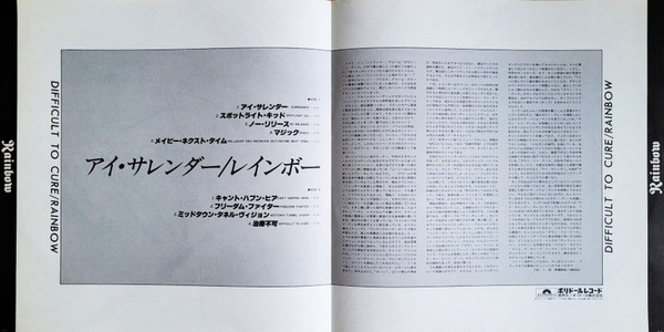This is the March 1981 initial 1st release that comes with an obi that features the "Polydor Heavy Metal Campaign" enquête(questionnaire/survey) form on the backside that you could cut out and mail in before the end of April for a chance to be one of the 5000 lucky winners of a Rainbow "Metal" Sticker. Also comes with a 4 page insert with liner notes by Masa Itoh. The outer pages are parallel to the inner sleeve bags of foreign releases(medical equipment photos and lyrics).