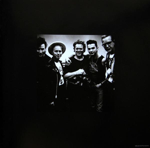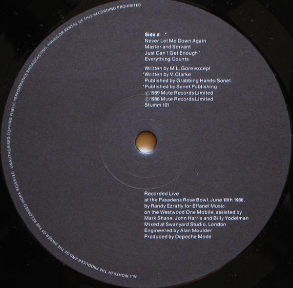"Depeche Mode 101" is not printed on the front of the outer cover. In fact this is a sticker. It is positioned just below the top, middle. As it has been applied manually, its precise position from copy to copy varies fractionally in this respect.