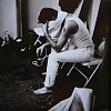 Gatefold envelope sleeve with die cut card inners (1 white, 1 black) and a 16-page 12" booklet of photos.
