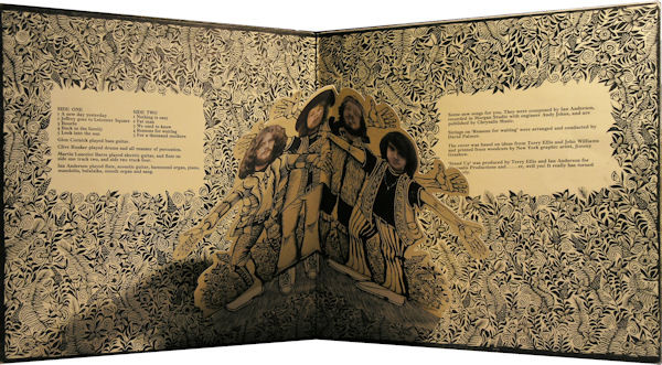 The cover was based on ideas from Terry Ellis and John Williams and printed from woodcuts by New York graphic artist, Jimmy Grashow.