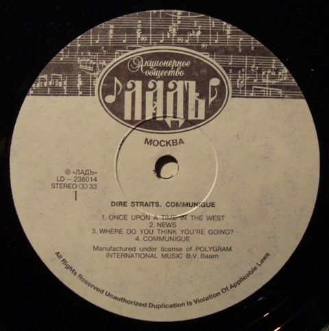"Communiqué" - right title - that notes on front and back cover, but on label mistaken titled like "Communigue".