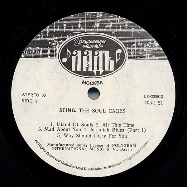 Manufactured under license of Polygram International Music B.V., Baarn с разрешения А/О «Международная Книга» Москва