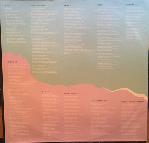 Released with printed inner sleeve with lyrics on one side and credits on reverse. A 12" b&w folded poster with photos of all band members, and a Nena collection 4 page fold-out merch mail-order insert.