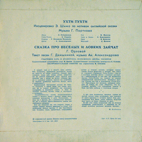 - Music By – Ан. Александров* (tracks: B2), Г. Портнов* (tracks: A, B1)