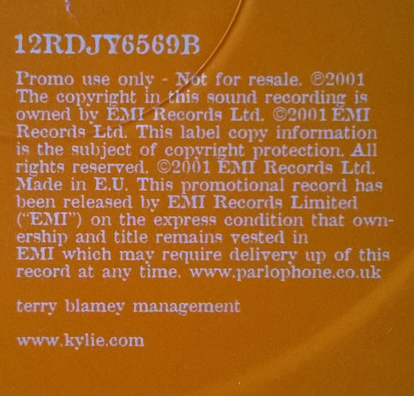 This promotional record has been released by EMI Records Limited ("EMI") on the express condition that ownership and title remains vested in EMI which may require delivery up of this record at any time.