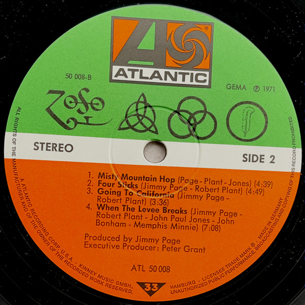Text first line on label rim text: A ATLANTIC RECORDING CORP. U.S.A. ∙ KINNEY MUSIC GMBH., HAMBURG ∙ LICENSEE TRADE MARK ® ∙ MADE IN GERMANY