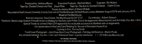 Recorded at Noel's House, Clonakilty, County Cork and the Workhouse, Old Kent Road, London between August 1978 and January 1979.