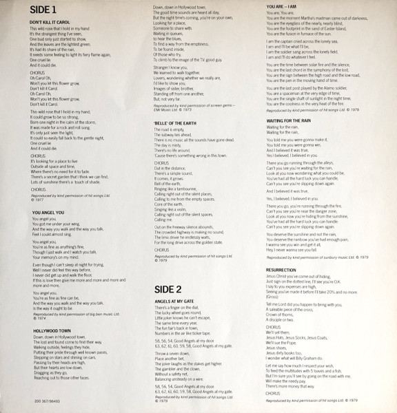 Released with lyrics sheet and first issues with two-sided poster (Album artwork and discography artwork, Tour map 1979 Germany plus written discography on reverse).
