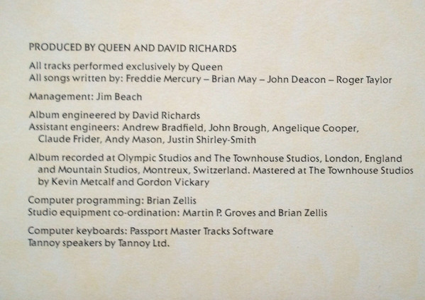 - Producer, Arranged By – David Richards, Queen