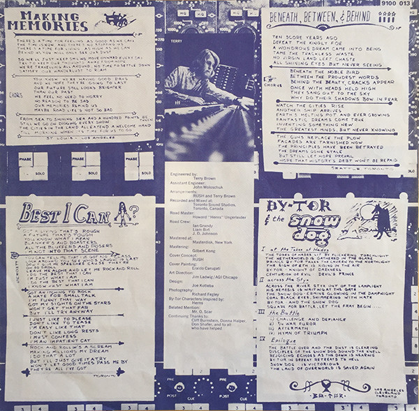 Produced by RUSH and Terry Brown / Executive Production by Moon Records, owned and operated By S.R.O. Productions Ltd. /