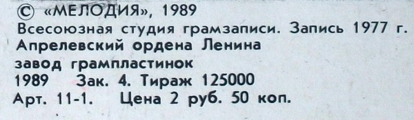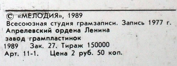 - Recorded By – Всесоюзная Студия Грамзаписи