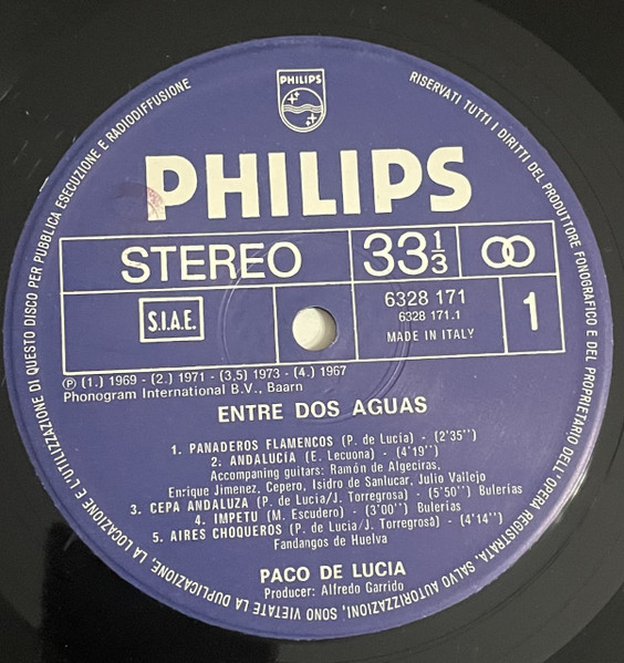 - Written-By – E. Lecuona* (tracks: A2), F. Sánchez* (tracks: B3), José Torregrosa (tracks: A3, A5, B1, B3, B5), Mario Escudero (tracks: A4), Paco De Lucía (tracks: A1, A3, A5, B1, B2, B4, B5)