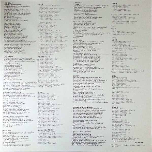 This is the very first Japan edition of Sad Wings Of Destiny. It comes with an obi strip and insert sheet with liner notes by Kensho Onuki and Yoichi Shibuya along with the English and Japanese lyrics transcriptions.