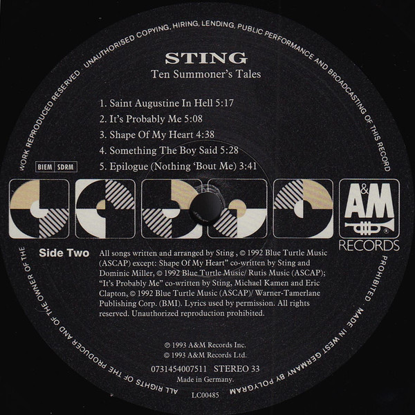 - Written-By – Sting (tracks: A1 to B1, B4, B5)