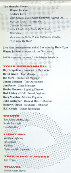 - Keyboards – Chris Stainton, Jeff Levine