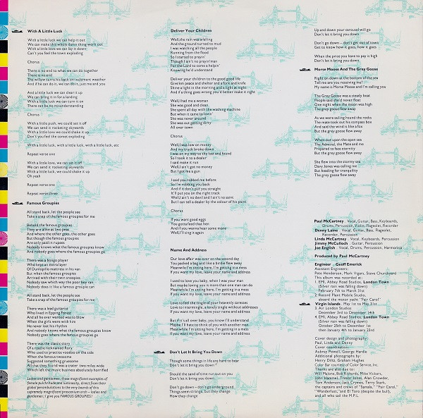 - Vocals, Keyboards, Percussion – Linda McCartney