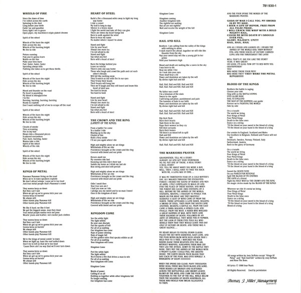 - Songwriter – Joey DeMaio, Ross The Boss (tracks: A2, B2)
