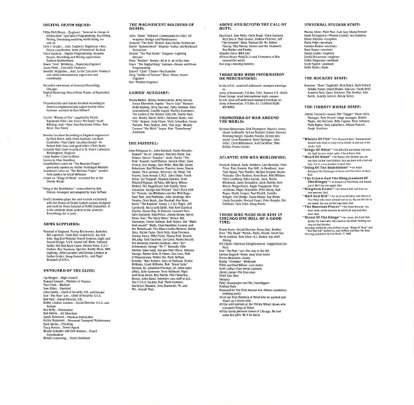 Recorded and mixed at Universal Recording, Chicago. Digital Mastering / Direct Metal Master at Masterdisk, N.Y. Canoldir Male Choir recorded in St. Paul's Cathedral, Birmingham, England. Crowd on A2 recorded live at the Thirsty Whale.