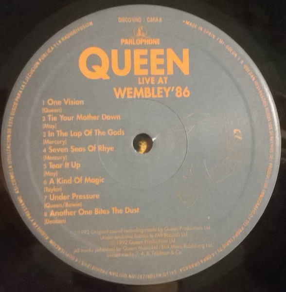 ℗© Grabación sonora original realizada por QUEEN productions Ltd. con licencia exclusiva EMI records Ltd. 1992