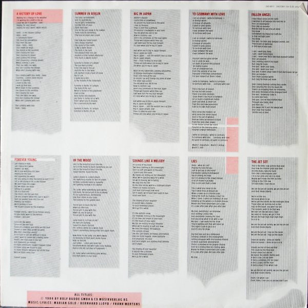 Album recorded & mixed at Studio 54 during July/August 1984 with the Traumton Computer System. Drums on A4, B1 & B2 and bass on A4 & B1 recorded at Weryton Studio.