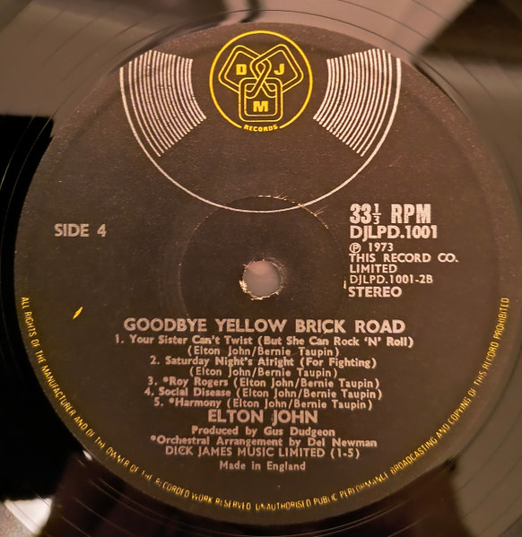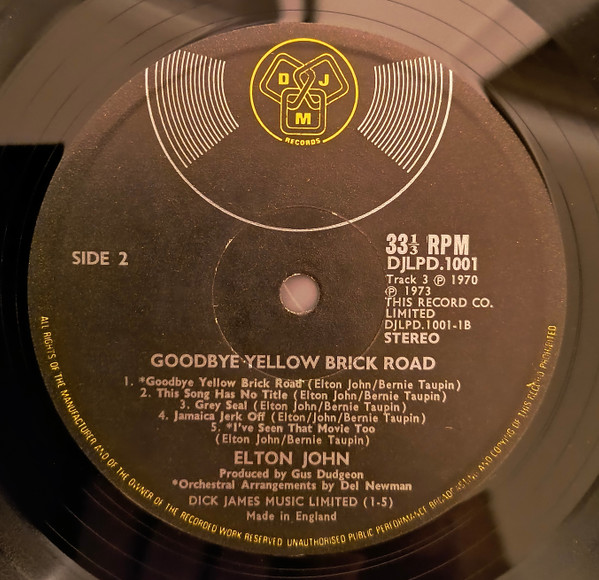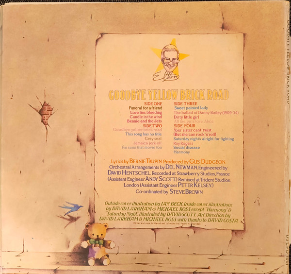 Track A3 is spelt on sleeve as 'Bennie And The Jets', and on vinyl labels as 'Benny And The Jets'.