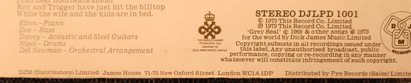 'Grey Seal' © 1969 & other songs © 1973 for the world by Dick James Music Limited.