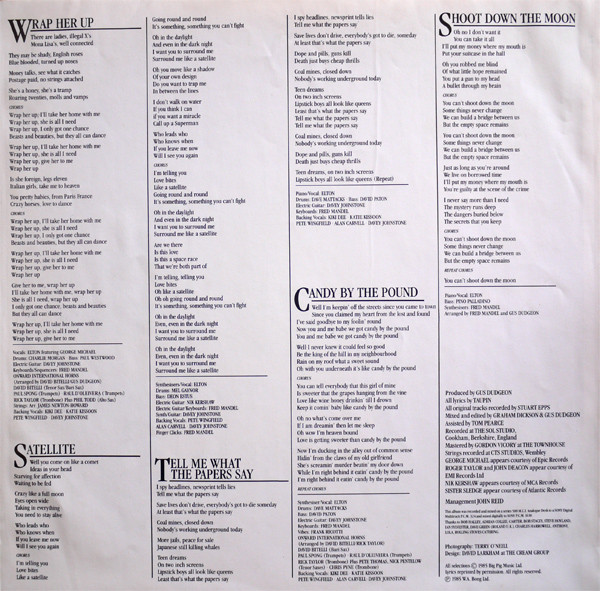 Satellite Backing Vocals – Alan Carvell, Davey Johnstone, Pete Wingfield