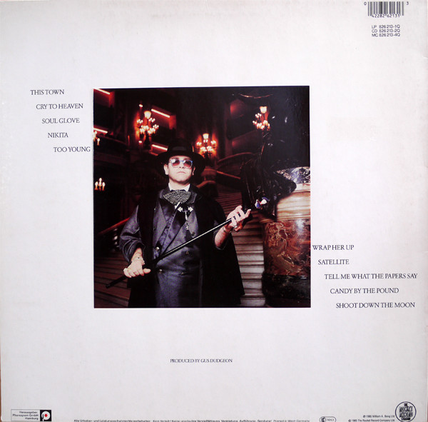 - comes with a printed inner sleeve, containing lyrics, credits, and other information. Taupin's photo and "826 213-1Q" printed on one side of the inner sleeve