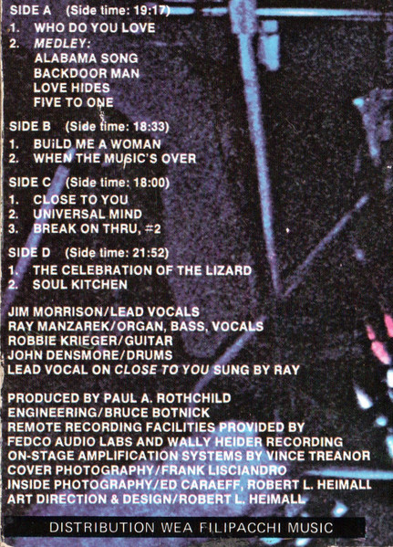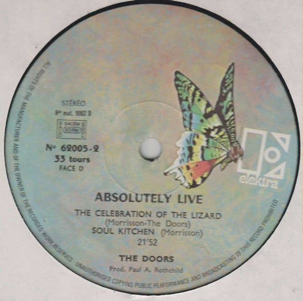 Longer matrix and different distributor (bottom left back sleeve) than The Doors - Absolutely Live