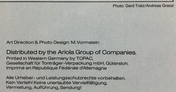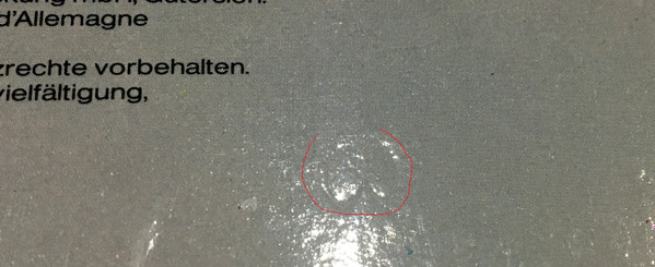 On the front sleeve, the golden coloured band name "Modern Talking" and the golden coloured squares/tiles are (slightly) embossed. Record sleeves might have a debossed non-ink stamp from the printing company.