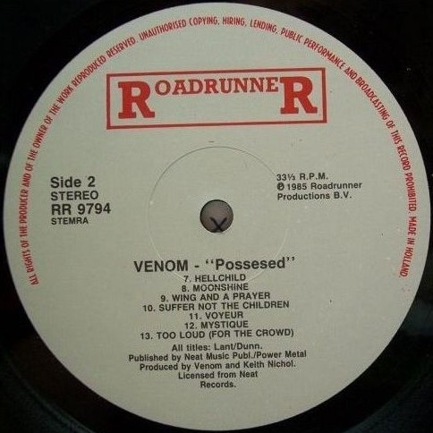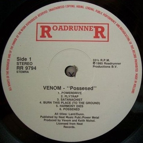 A6 is misspelled "Possened" on the label, spine and center labels also misspell the album title as "Possesed"