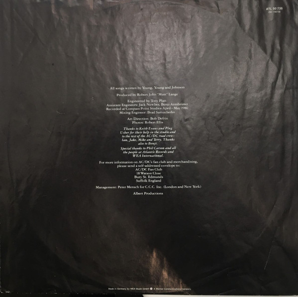 This pressing has catalog number on upper right of rear sleeve, unlike this similar version: AC/DC - Back In Black