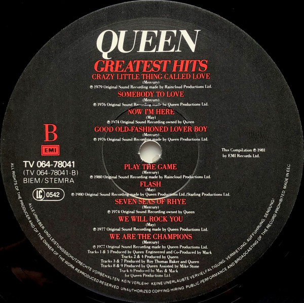 - Written-By – May* (tracks: A4, A8, B3, B6, B8), Mercury* (tracks: A1, A3, A5, A7, B1, B2, B4, B5, B7, B9), Deacon* (tracks: A2, A6)