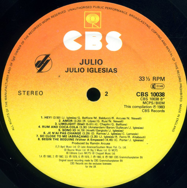 | B7 | Julio Iglesias– | So Close To Me (Abraçame) | 3:35 |