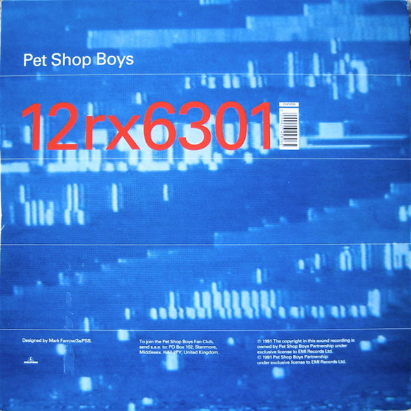 ℗ 1991 The copyright in this sound recording is owned by Pet Shop Boys Partnership under exclusive license to EMI Records Ltd.