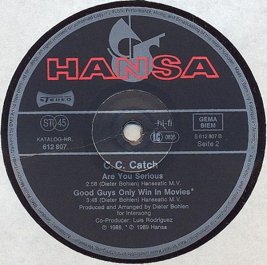 Also available on 5" MAXI-CD 662 807 : C.C. Catch - Good Guys Only Win In Movies.