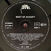 Similar repress Best Of Accept (1985) with identical centre labels shows non-PRS Hannover galvanization stamps, a paper covered pressing ring and an elevated centre label rim area.