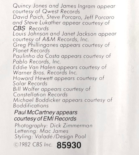 Handclaps – Greg Phillinganes, James Ingram, Louis Johnson, Michael Jackson, Steven Ray (2)