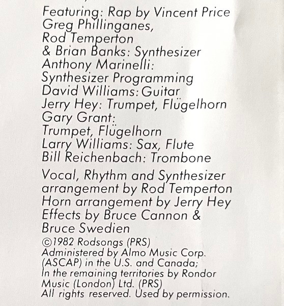 Arranged By [Vocal, Rhythm And Synthesizer Arrangement] – Rod Temperton
