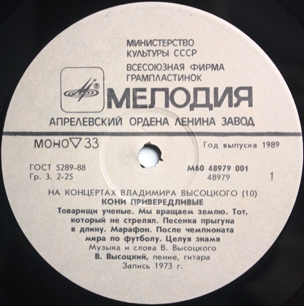 - Производитель грампластинки – Апрелевский Завод Грампластинок