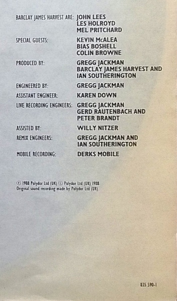 - Producer – Barclay James Harvest, Gregg Jackman, Ian Southerington