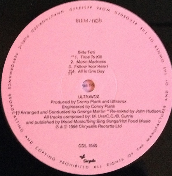 - Phonographic Copyright (p) – Chrysalis Records Ltd.