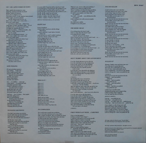 Written-By – Christopher Frantz*, David Byrne, Martina Weymouth*
