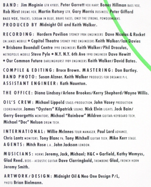 - Design, Artwork – Midnight Oil, Neo One Design P/L*