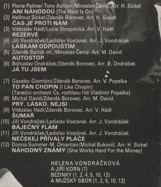 - Vocals – Helena Vondráčková, Jiří Korn (tracks: B1)