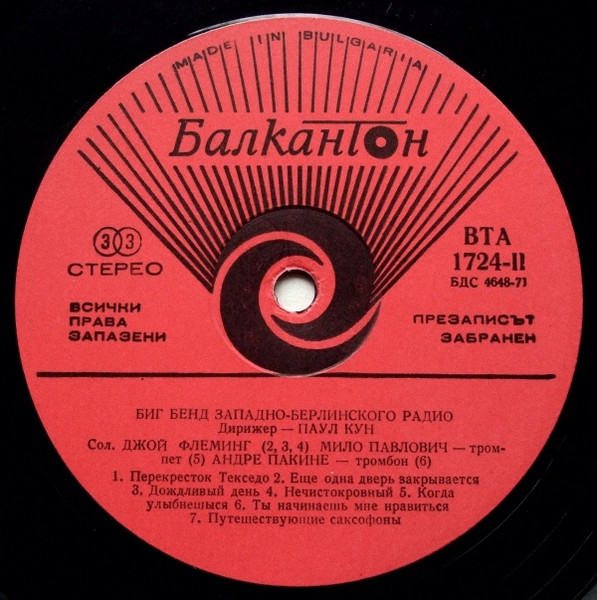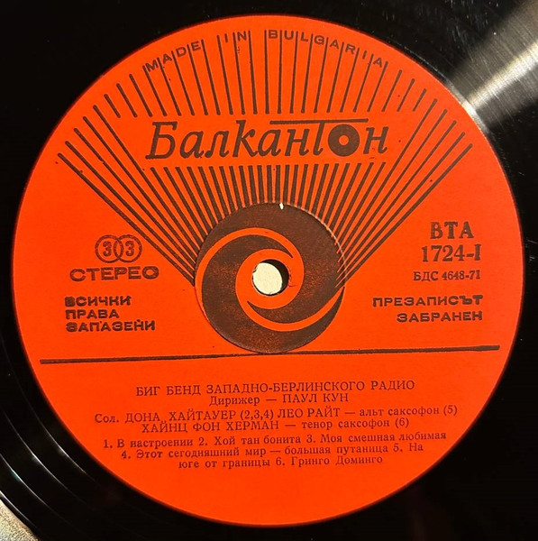 Tracklisting is in Russian on the labels. Title on labels: Биг Бенд Западно-Берлинского Радио