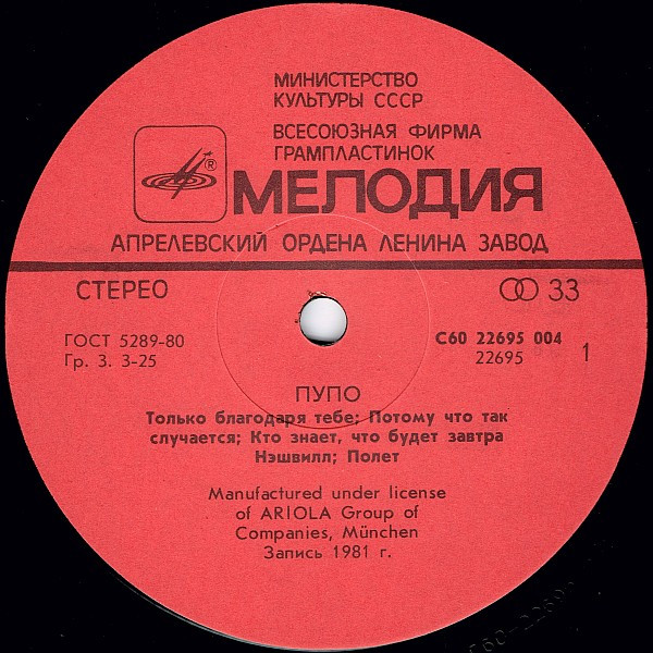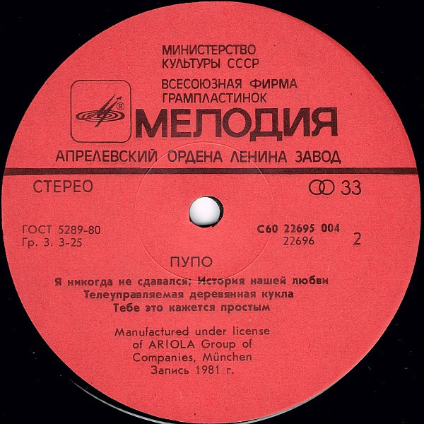 - Pressed By – Апрелевский Завод Грампластинок