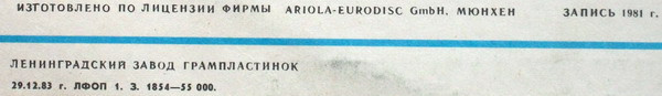 - Pressed By – Ленинградский Завод Грампластинок