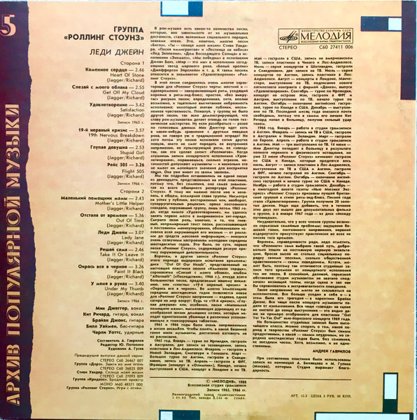 5th volume of the series "Архив Популярной Музыки" ("Archive of Popular Music"). Recorded in 1965 and 1966.