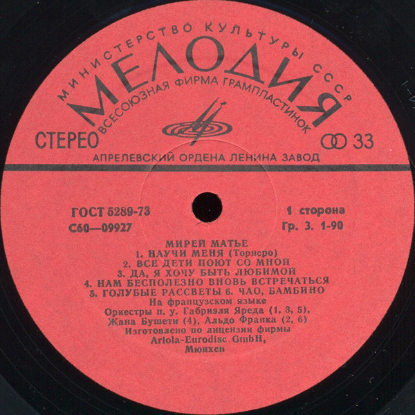 | B6 | Моя Мелодия Любви = Ma Melodie D'Amour | 3:08 |